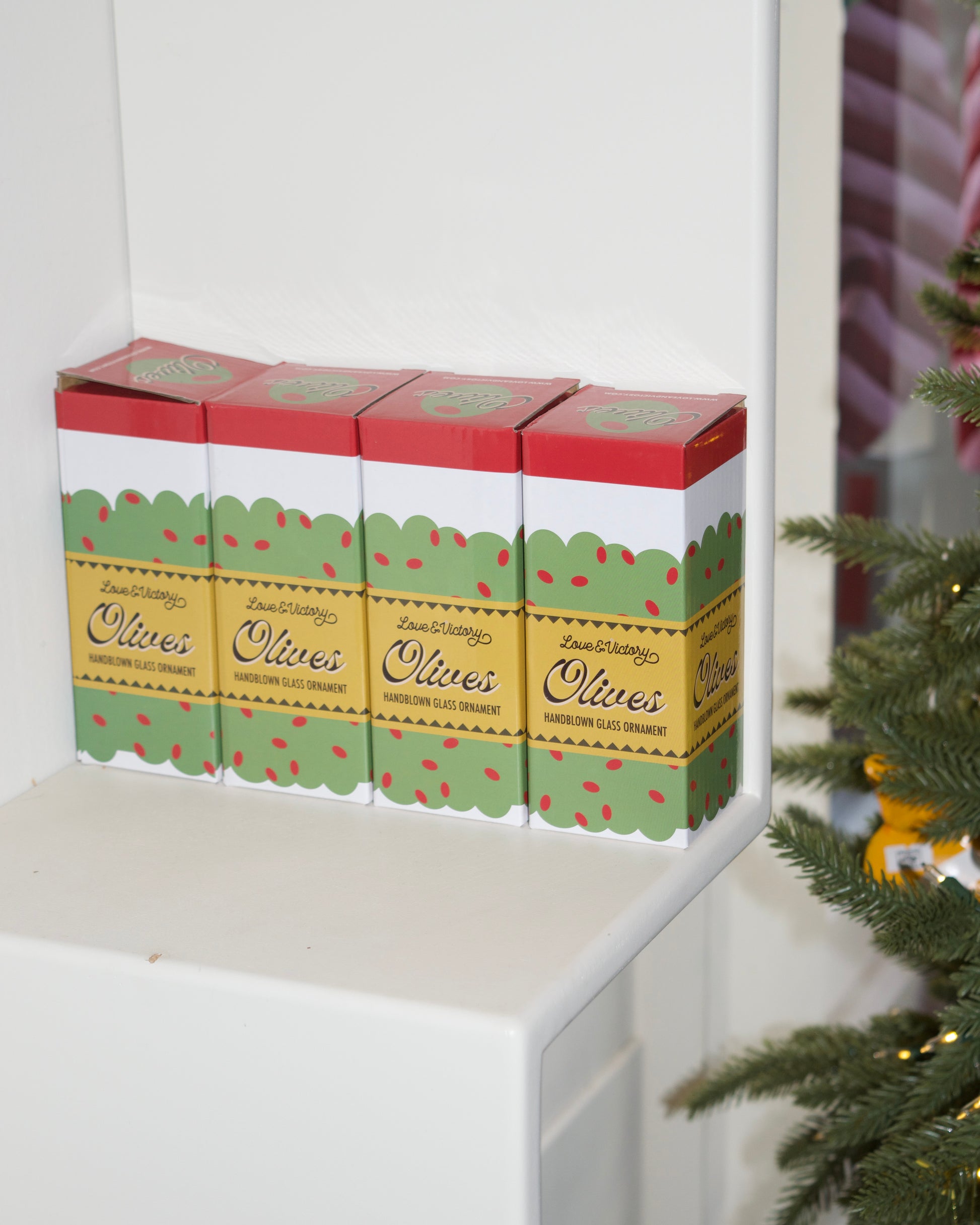 No cocktail enthusiast's Christmas tree is complete without this hand-blown glass jar of olives. With a hand-painted jar and life-like olives, this ornament looks like the real deal! The perfect gift for yourself or your favorite Martini lover!