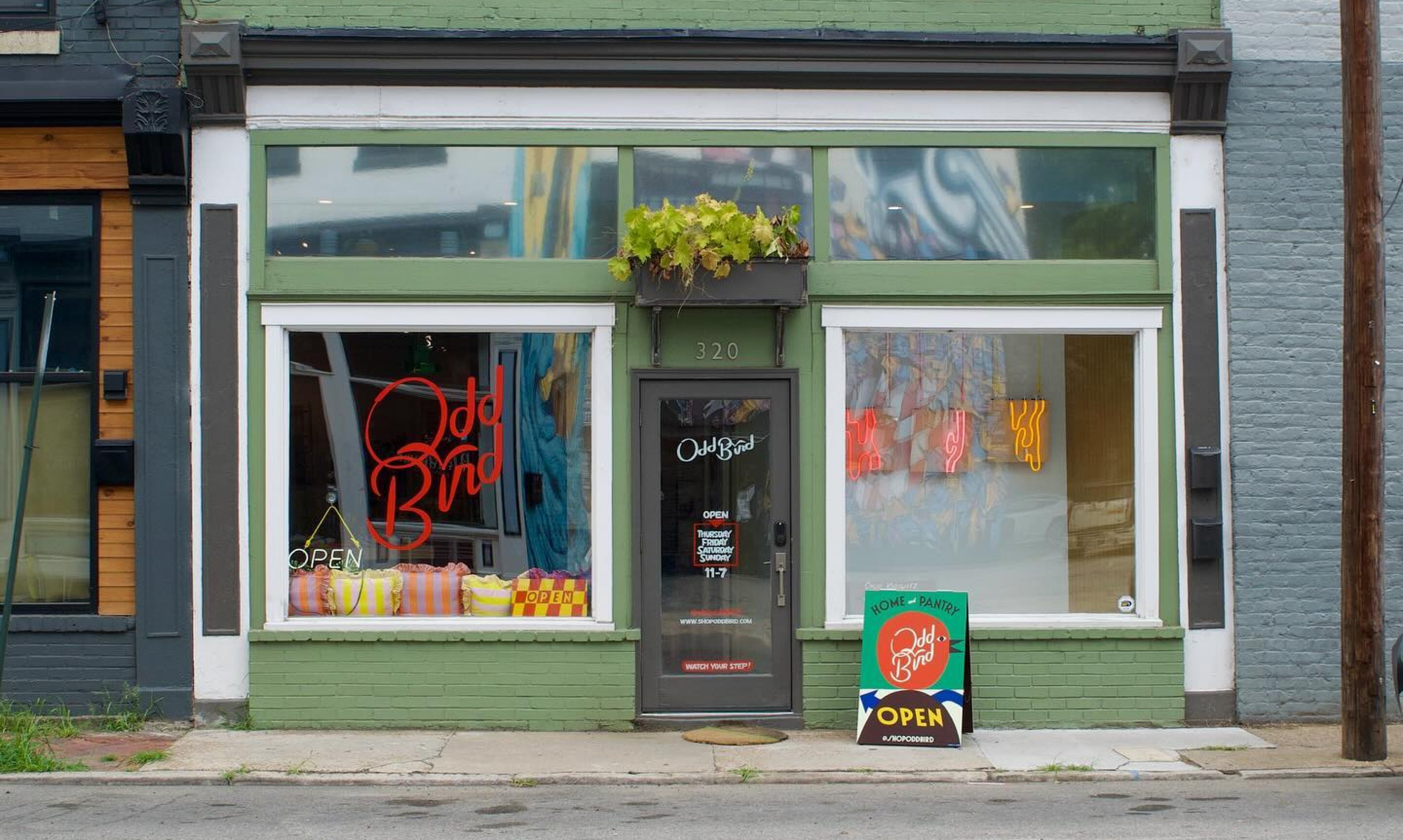 Every corner of Odd Bird tells our story: the counter made from an old walnut tree in our backyard, the orange of our front door color-matched for our logo and checkout counter, and the displays lovingly “reorganized” to our toddler’s liking.